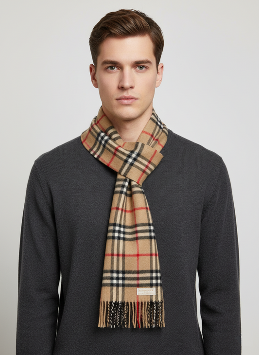 Burberrys Check Scarf 100% Pure Cashmere Scarf – Classic Check