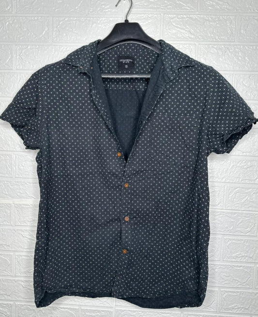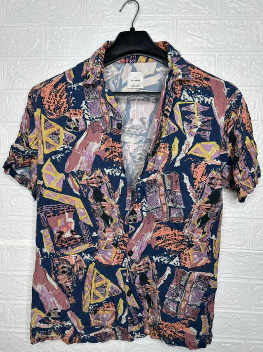 Pull & Bear Men’s Shirt – Multi-Color Printed Short Sleeve