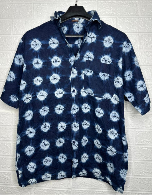 D'Urban Men’s Shirt – Blue Tie-Dye Printed Short Sleeve