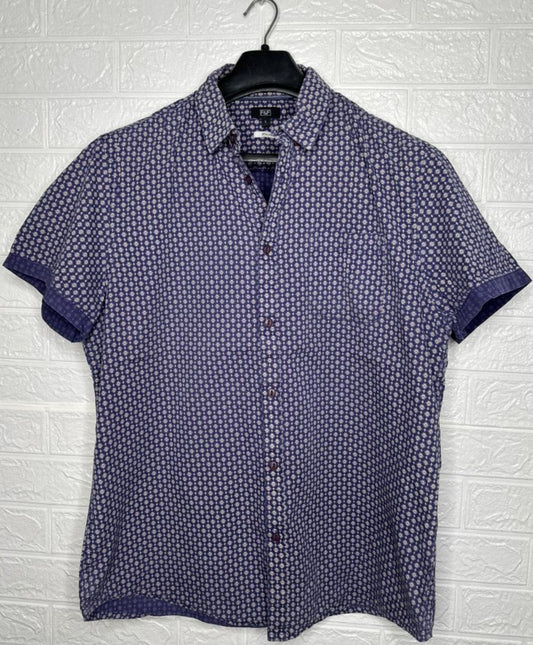F&F Men’s Shirt – Blue Printed Short Sleeve Casual Wear