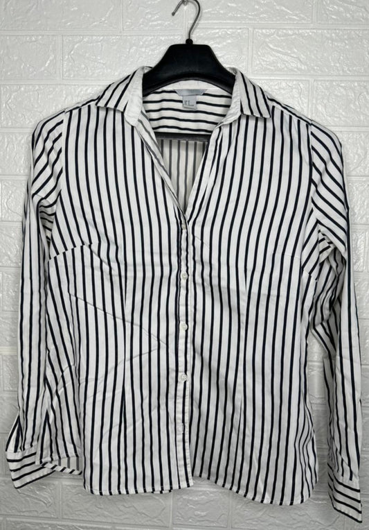 H&M Women’s Shirt – Black and White Striped Casual Wear