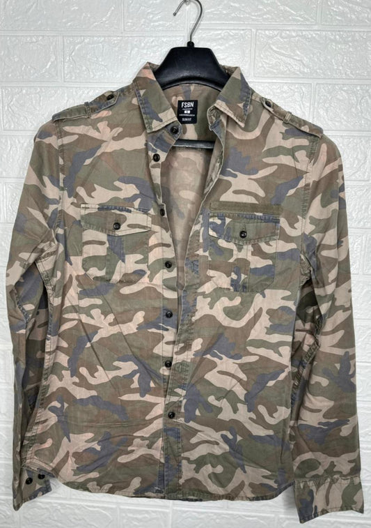 FSBN Men’s Shirt – Camo Print Long Sleeve Casual Wear Size Small