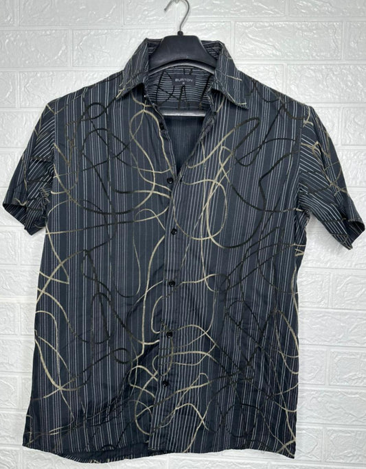 Burton Men’s Shirt Medium – Black Abstract Printed Short Sleeve Casual Wear