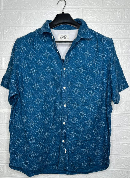 Topman Men’s Casual Shirt XL – Blue Printed Short Sleeve Summer Beachwear