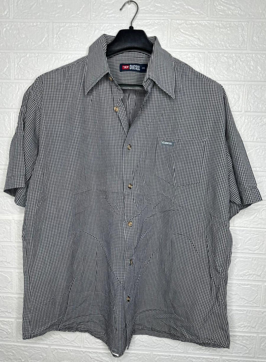 Diesel Men’s Shirt – Gray Checkered Short Sleeve Casual Wear