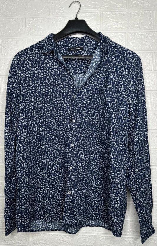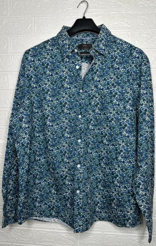 Peacocks Men's Shirt - Blue Floral Printed Long Sleeve Casual Wear