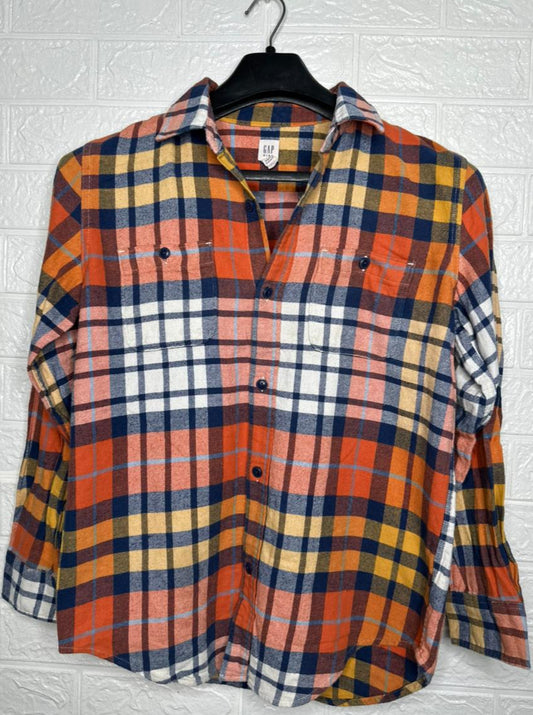 GAP Kids Orange Plaid Flannel Shirt XXL - Long Sleeve Button-Up