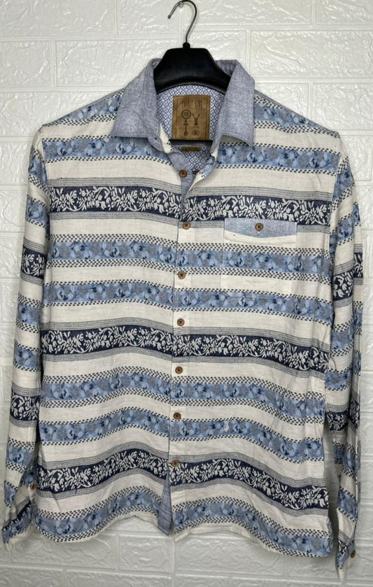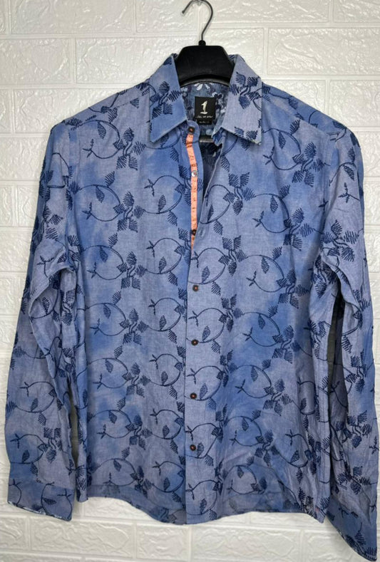 Pearly King Men’s Shirt – Blue Printed Long Sleeve Casual Wear