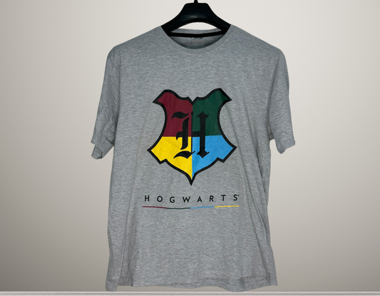 Hogwarts Crest Graphic T-Shirt | Harry Potter House Colors Tee | Official Wizarding World Shirt | Large Grey