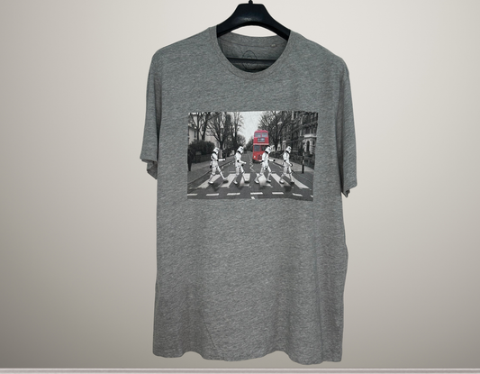Stormtroopers Abbey Road Graphic T-Shirt | Star Wars Parody Tee | XL Grey Funny Crossover Shirt