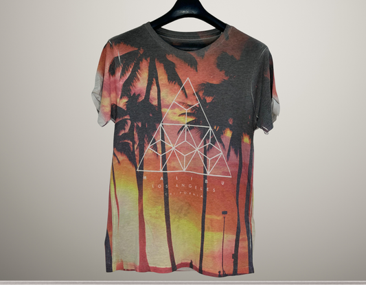 Malibu Sunset Graphic T-Shirt | Los Angeles California Tee | Tropical Beach Vibes | Medium Size