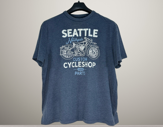 Seattle Cycle Shop Graphic T-Shirt | Size XL | Vintage Motorcycle Print Tee | Custom Parts Garage Style | Biker Streetwear Shirt