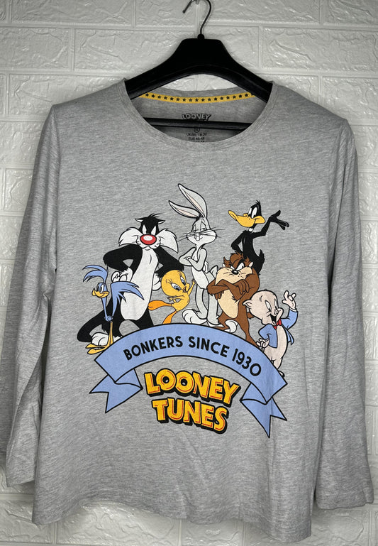 Looney Tunes "Bonkers Since 1930" Long Sleeve Shirt XL - Grey Cartoon Pullover