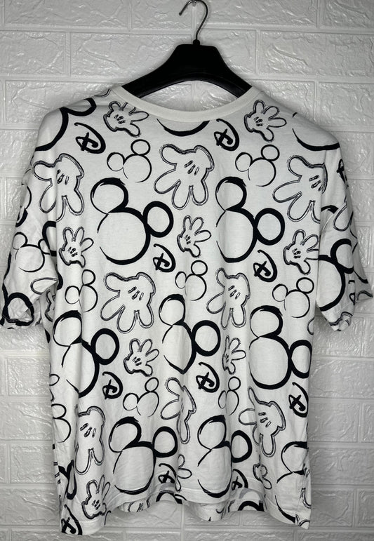 Disney Mickey Mouse Hands All-Over Print T-Shirt M - Black & White Classic Tee