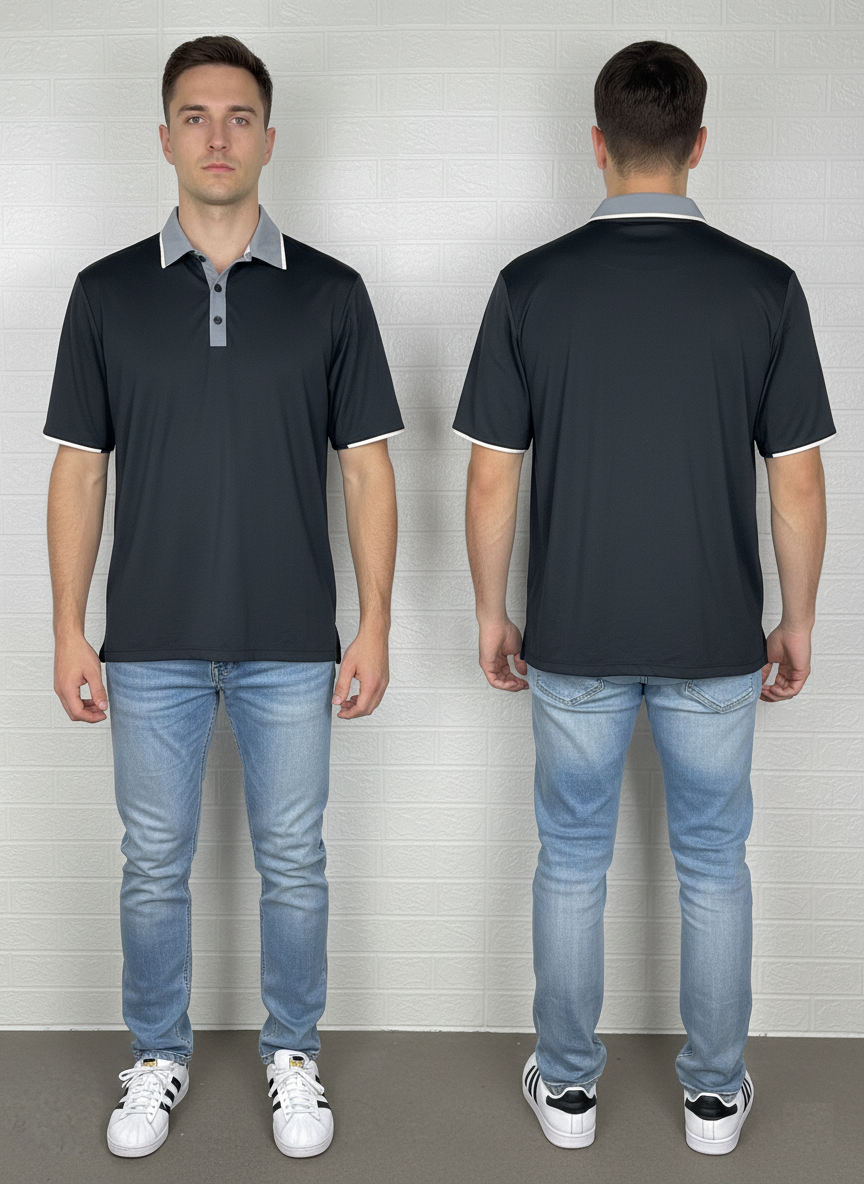 Adidas ClimaCool Polo Shirt – Black with Grey Collar – Size Medium