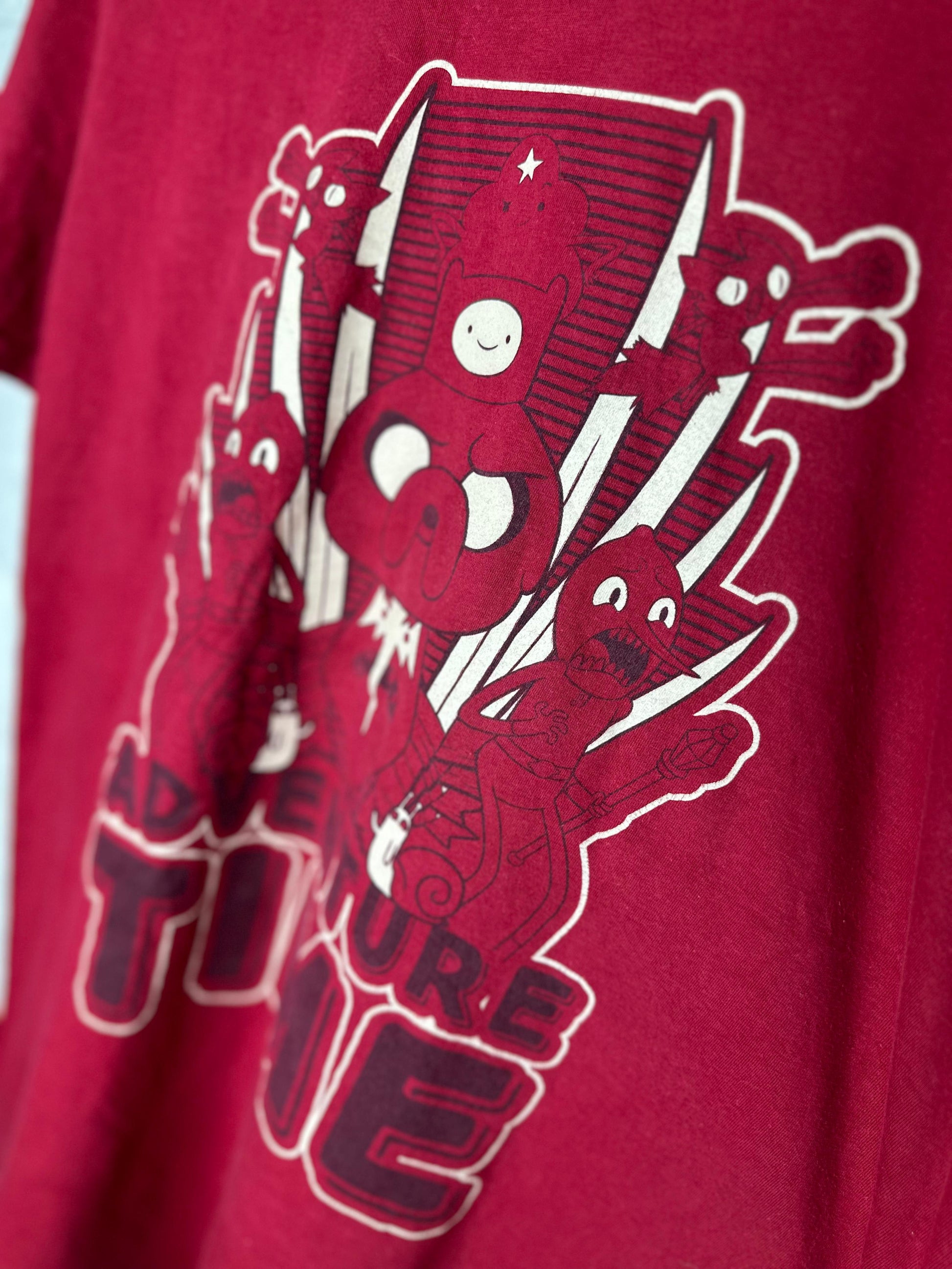 📖 Description Go on an adventure with this cool Cartoon Network "Adventure Time" graphic T-shirt in size Small. This red tee features a stylized print of Finn and Jake along with other iconic characters from the popular animated series. It's a must-have for any fan, with a design that captures the playful and whimsical spirit of the show. Made from a comfortable and soft fabric, it’s perfect for casual wear, showing off your love for cartoons, or just hanging out.