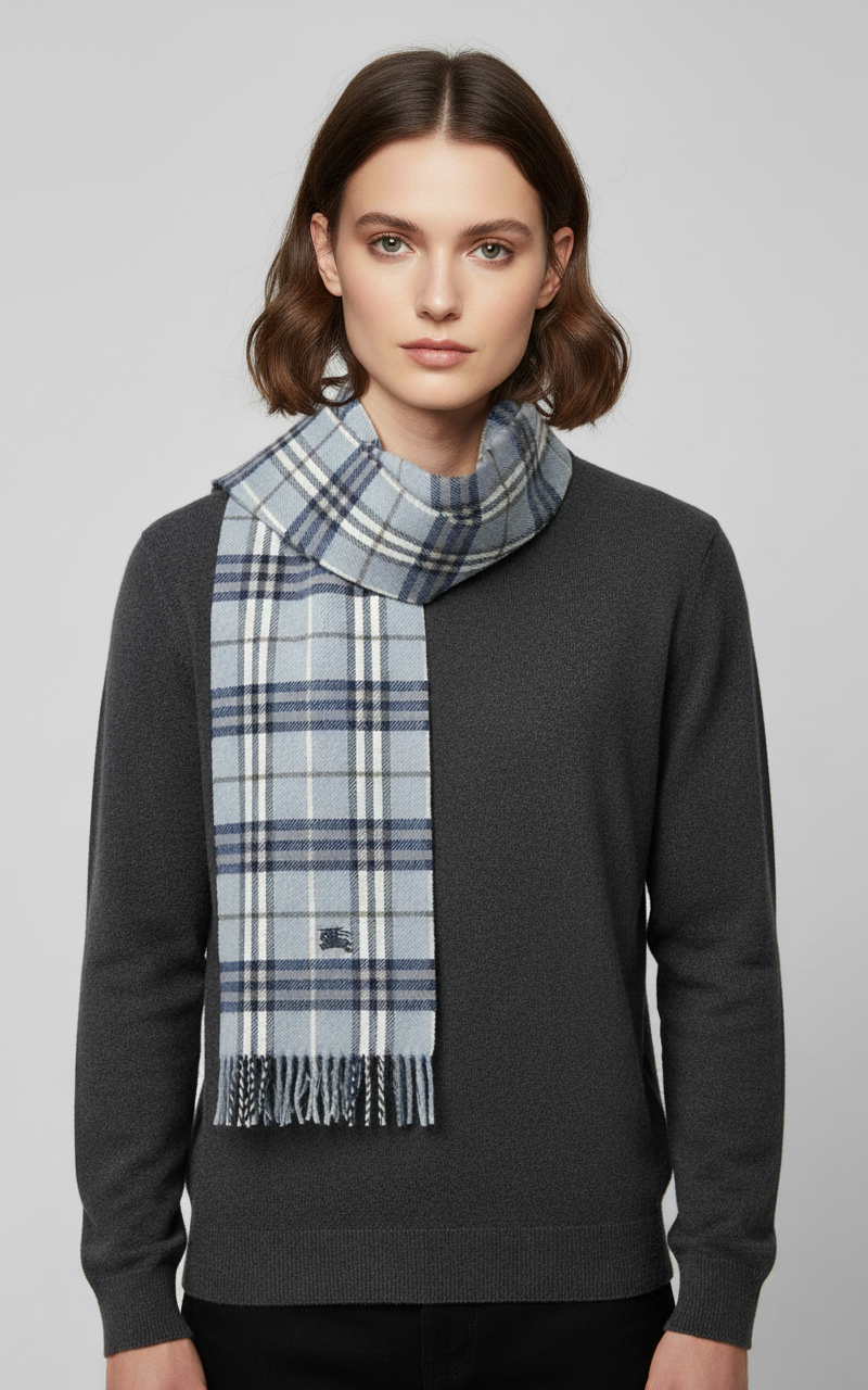 Add timeless British elegance to your wardrobe with this authentic Burberrys check muffler scarf, made from 100% pure cashmere. Soft to the touch, lightweight, and incredibly warm, this luxurious accessory is a staple for anyone who values style and comfort.