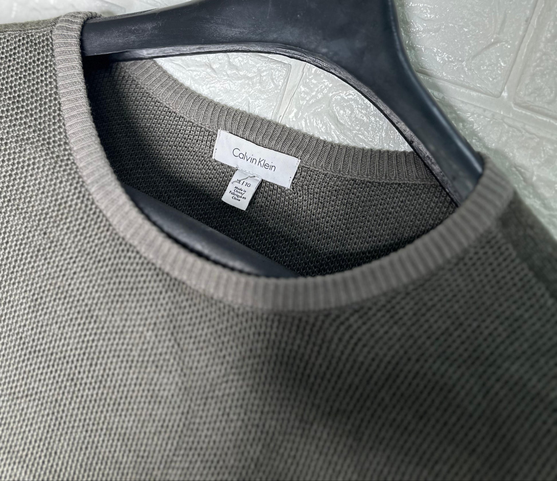 Description Add a touch of modern sophistication to your wardrobe with this Calvin Klein textured knit pullover in size XL. This grey sweater features a subtle, vertical striped pattern for a unique look. The classic crewneck and comfortable fabric make it perfect for layering and for both smart-casual and professional settings.