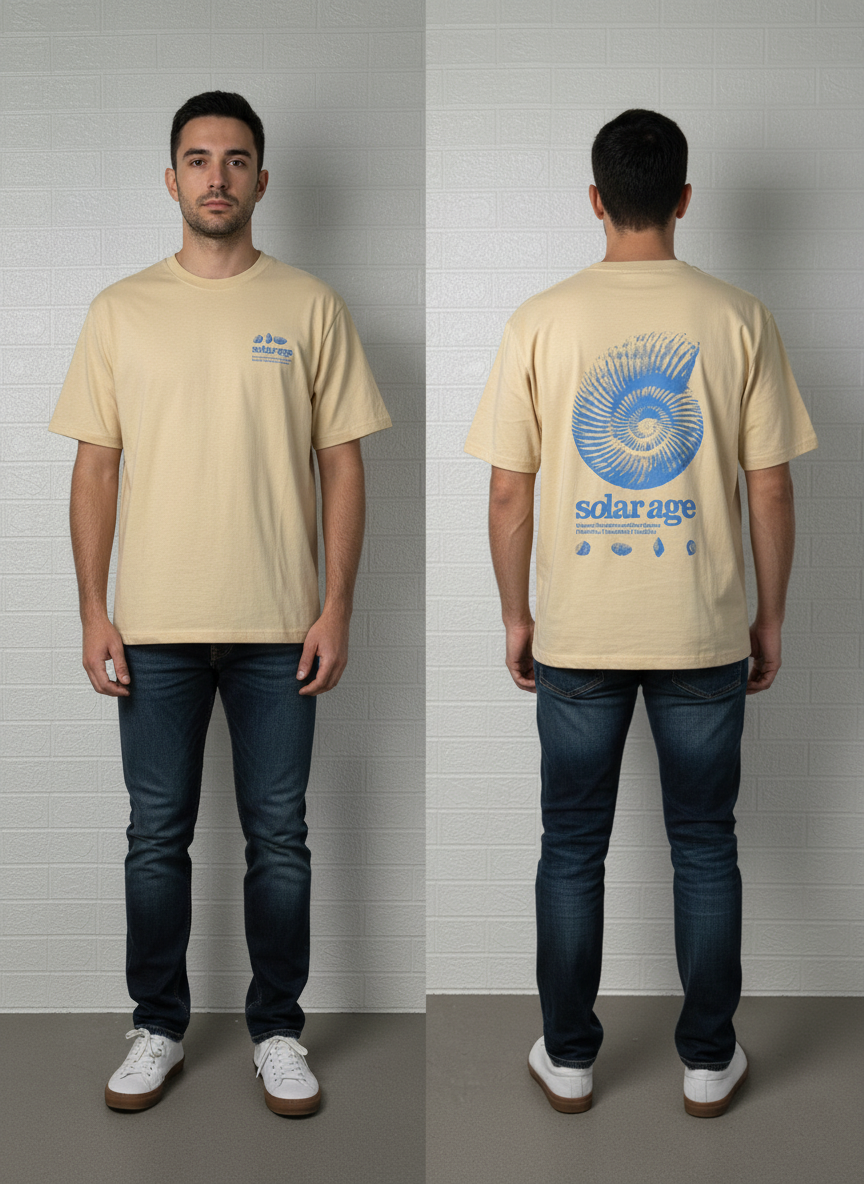Bring sustainable style into your wardrobe with this H&M Solar Age Graphic T-Shirt in a soft beige shade. Featuring a subtle blue “Solar Age” logo and minimalist front print, this tee combines fashion with an eco-conscious message.